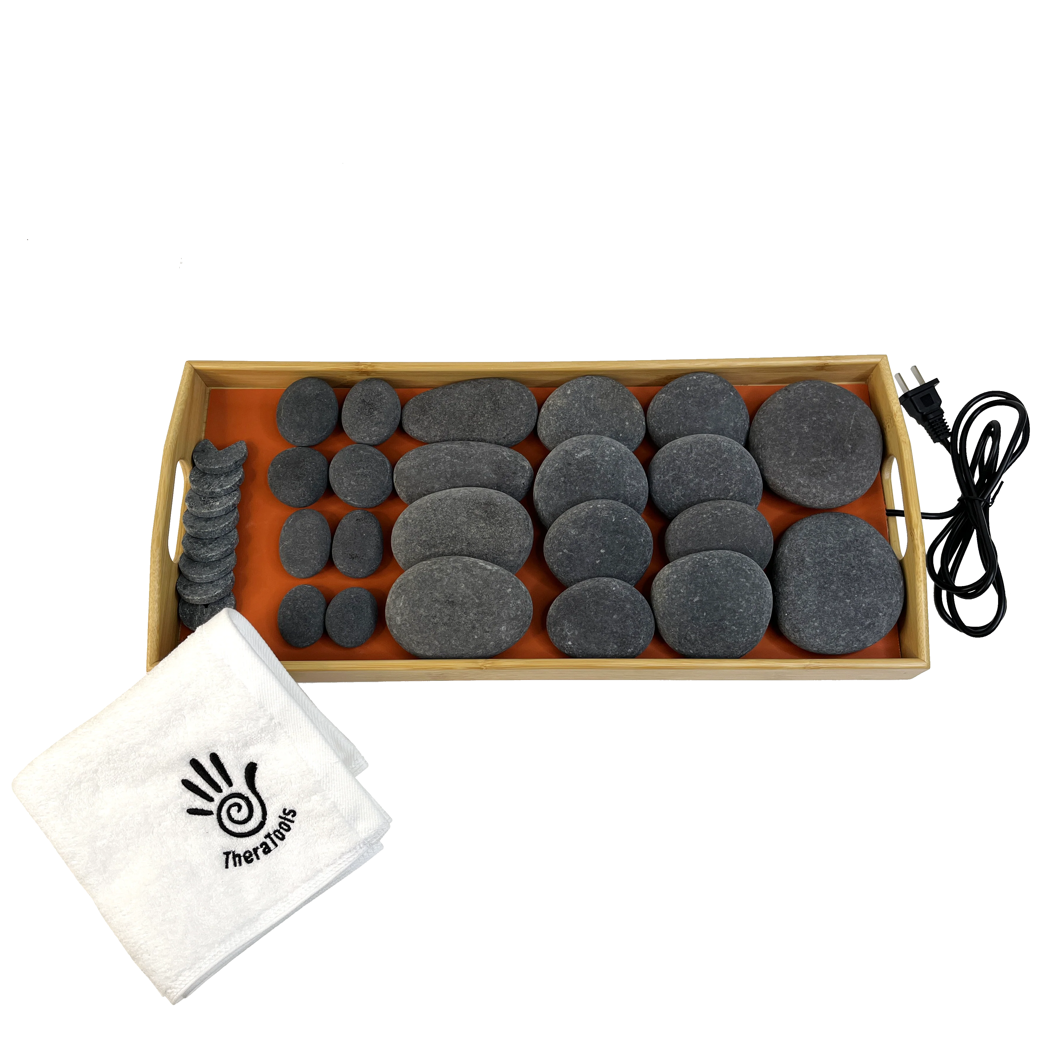 Theratools Professional Warming Tray Basalt Stone Set, 30 Stones